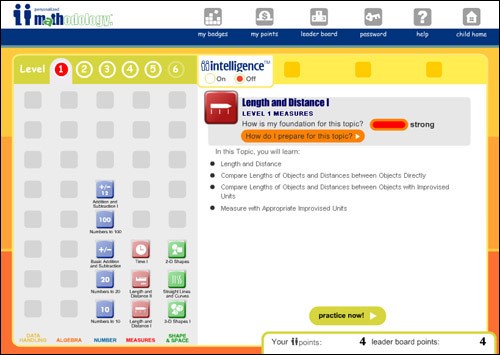每天花點時間學習數學,將能奠下好的數學基礎,而我們已為您的孩子,把數學學習變成更有趣和更具挑戰性使用 "ii-Intelligence" 來節省您孩子的時間,讓他跟據電腦的指示在3個最有需要的數學單元裡進行訓練。如此,您的孩子可以在他比較弱的單元裡趕上程度,在他的強項裡繼續晉級。"ii-Intelligence" 這個功能也可以隨時關上,讓您的孩子專心練習自選的單元。在學校考試前,這是一個靈活而有效的複習工具。