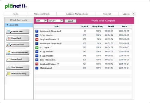 想看到孩子在同儕中的表現嗎?這裡您可以看到您的孩子和其他學校和地區的同年的孩子如何在 PLANETii 中爭取更高的數學成就,是 PLANETii 對表現特出的同學的一點鼓勵。